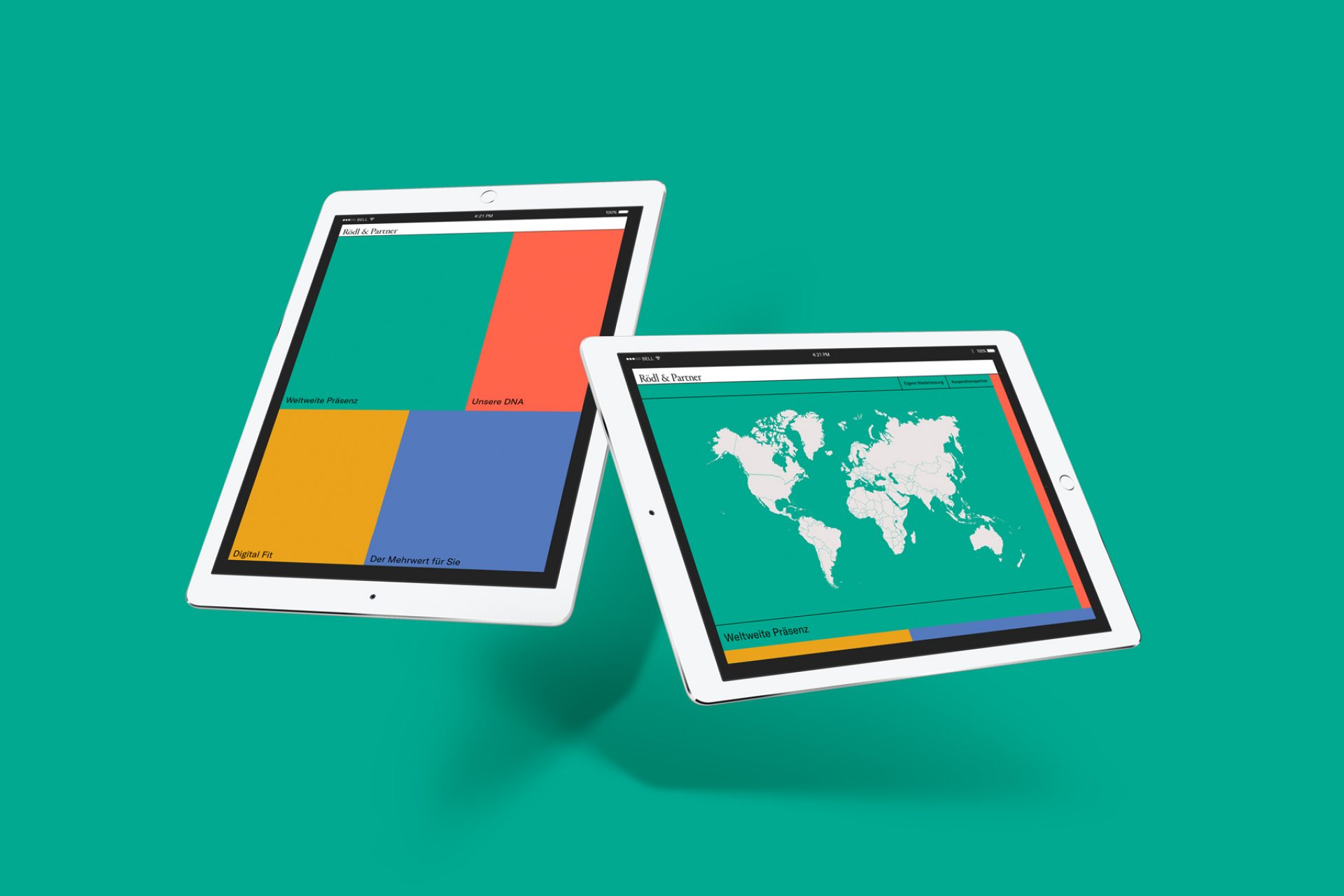 Entwicklung eines Design Konzeptes, das die Vereinbarkeit von offener Nahbarkeit und branchenspezifischen, tabellarischen Wesen von Rödl & Partner komprimiert. Neu definierte Markenwerte übersetzt in eine vielschichtige, visuelle Identität, die sich flexibel in eine digitale Dimension führen lässt.