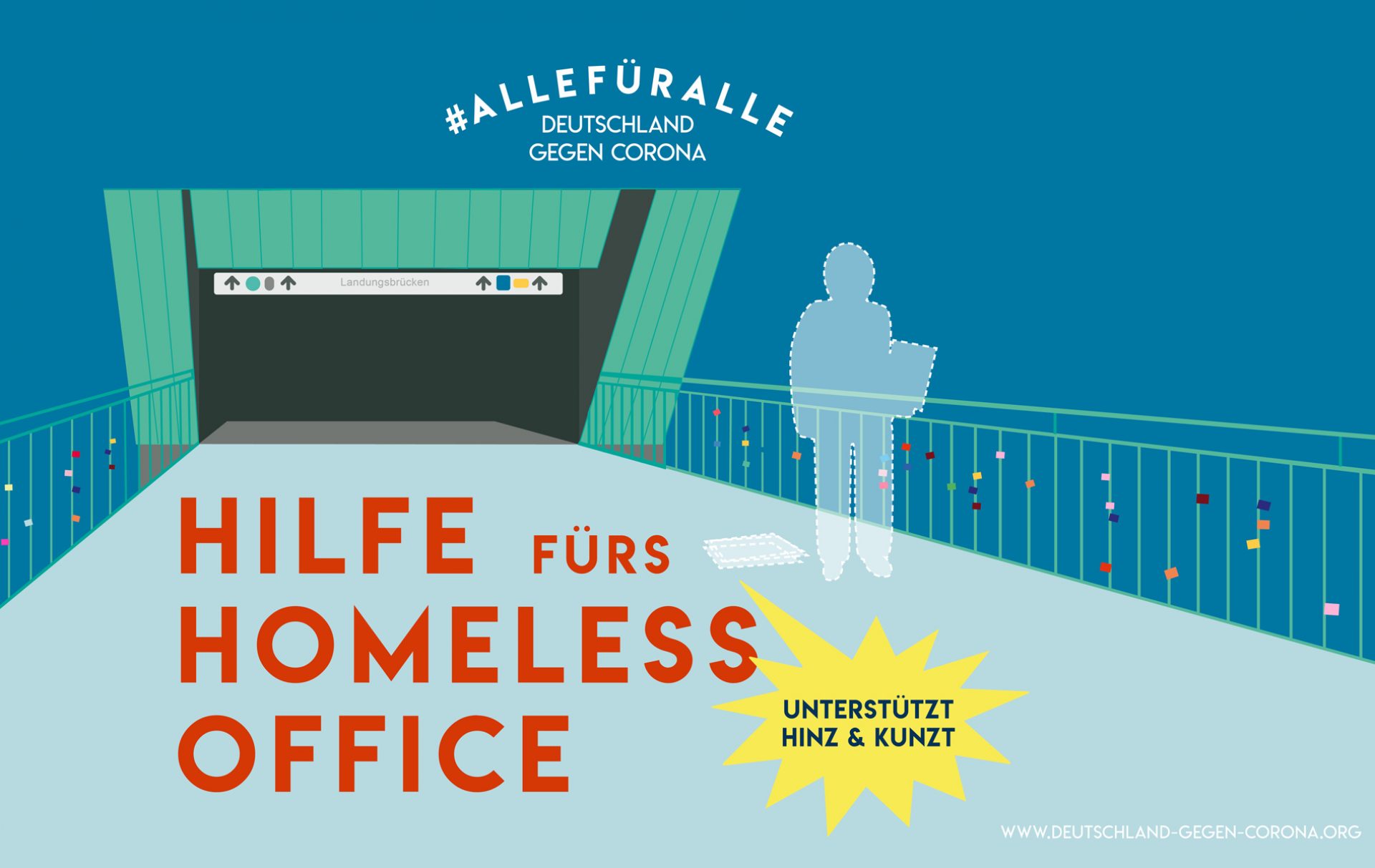 Zusammen mit Partnern aus der Wirtschaft (darunter DAK-Gesundheit, Das Futterhaus, Deutsche Bank, Hamburger Hochbahn, kununu, Kühne, Spreadshirt, Unilever, WallDecaux) und den Medien (zum Beispiel ada, Bauer Media Group, Der Spiegel, Facebook, FAZ, Gruner + Jahr, Handelsblatt, WirtschaftsWoche und ZDF) appellieren wir mit der Kampagne „Alle für alle“ an jeden Einzelnen, soziale Distanz in neue Nähe zu verwandeln. Über die Medienpartner sind die Motive der Kampagne online wie in Print geschaltet.